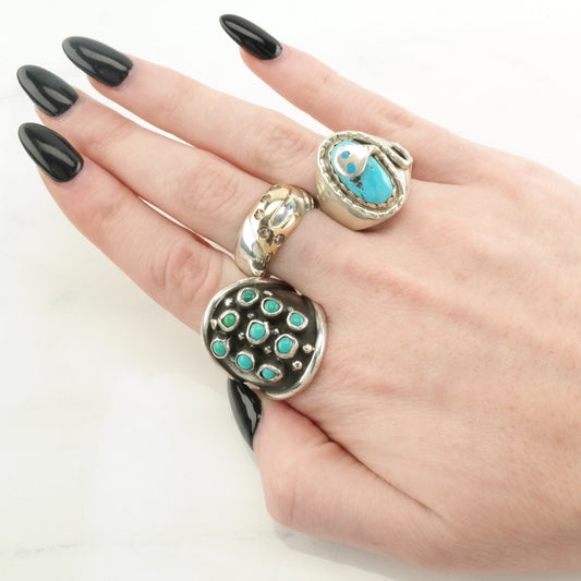 Vintage Native American Silver Ring Turquoise Large Sterling Blue Size 8