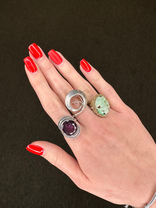 Vintage Abstract Silver Ring Abstract Sterling Size 7 1/4