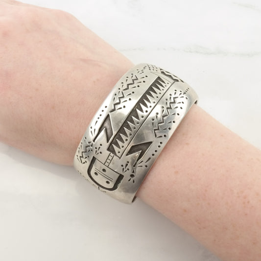 Zuni Inlay Cuff Bracelet Native American Sterling Silver Kachina