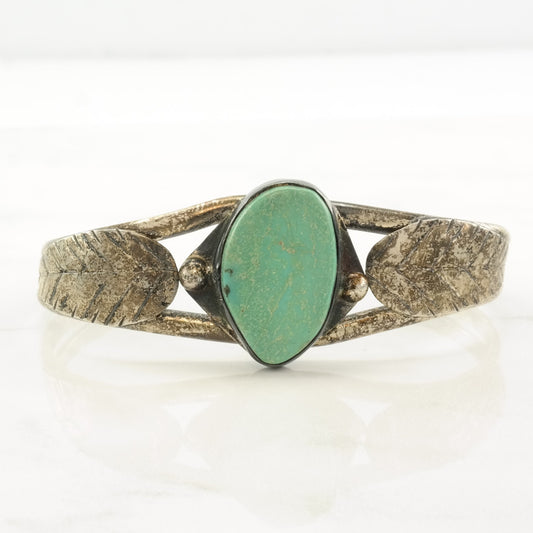 Native American Sterling Silver Cuff Bracelet Blue Turquoise Leaf