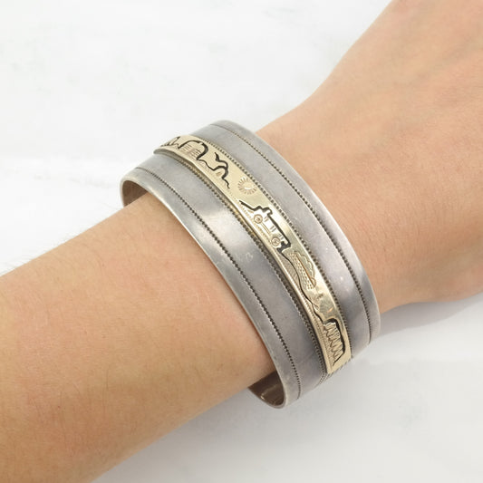 Native American Sterling Silver Cuff Bracelet 14K Gold Accent Storyteller