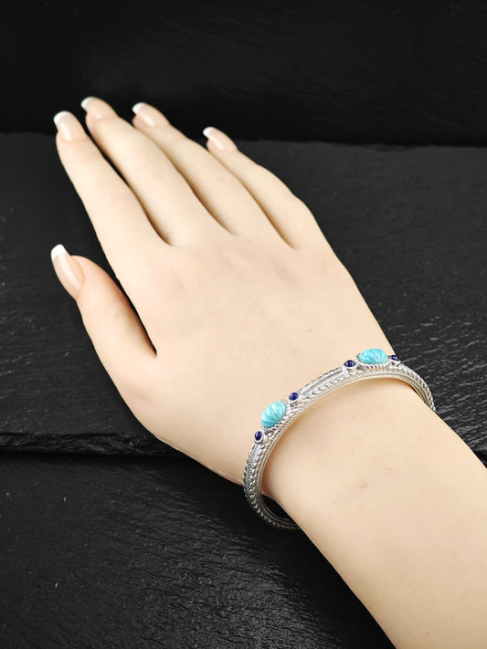 Curio Native American, Stamped Natural Turquoise Cuff Bracelet Sterling Silver