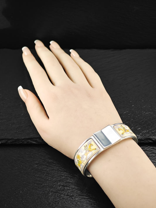 Rare Hermes Equestrian Bangle Bracelet Sterling Silver Porcelain Vintage