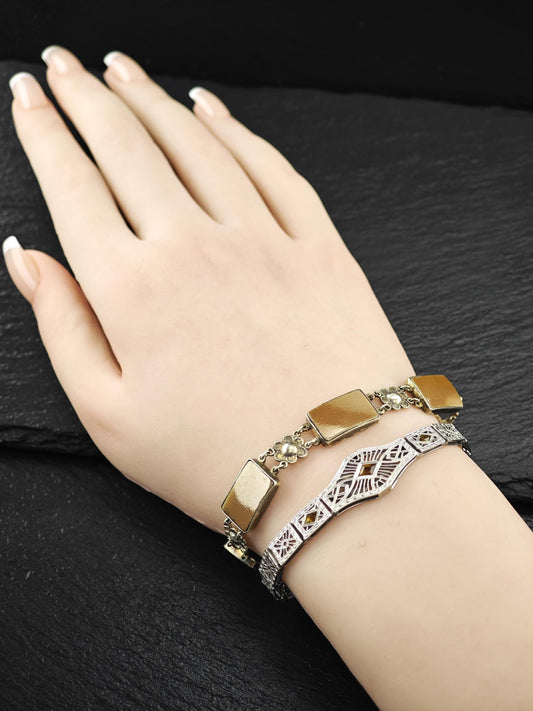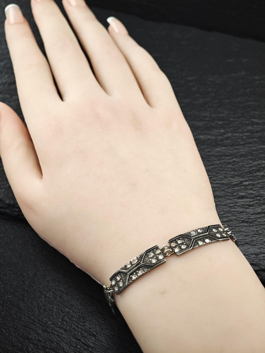 Antique Art Deco Enamel Paste Bracelet Sterling Silver