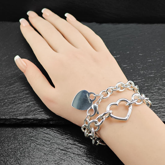 Sterling Silver Large Tiffany Curb Link Bracelet Heart Design
