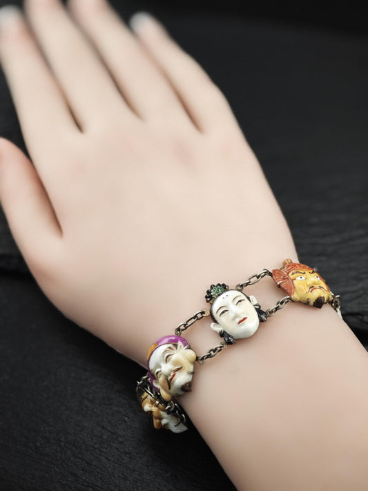 Pristine Japanese Toshikane, 7 Gods of Fortune Bracelet, Porcelain Sterling Silver