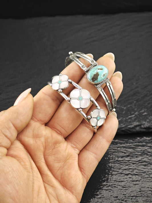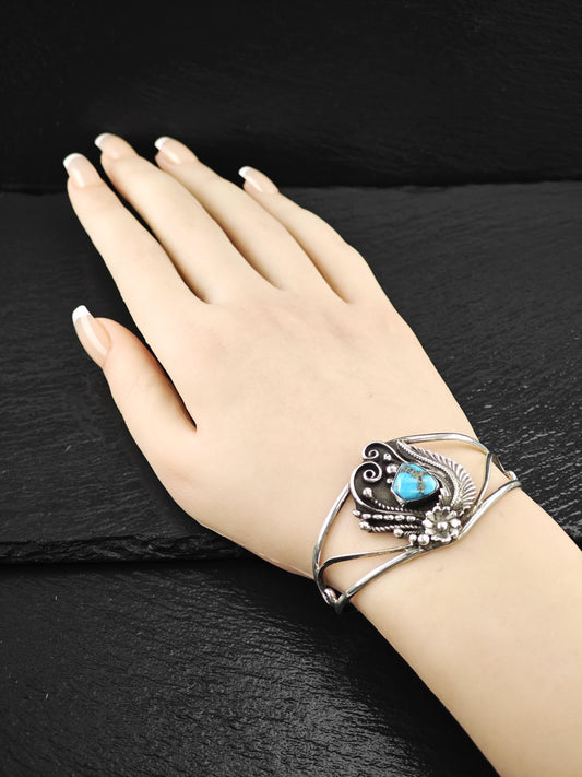Southwest, Turquoise, Floral Cuff Bracelet Sterling Silver