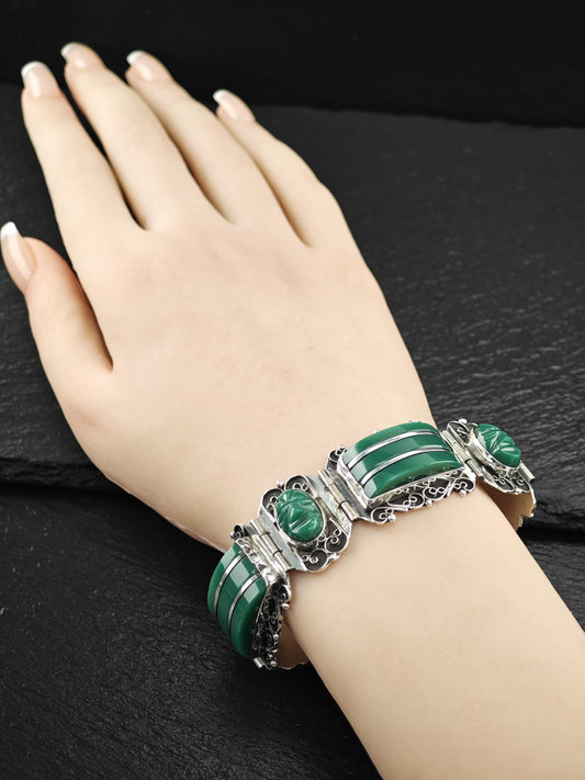 Mexico Green Onyx, Mask Panels Bracelet Sterling Silver