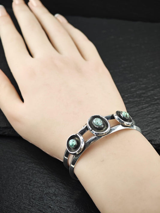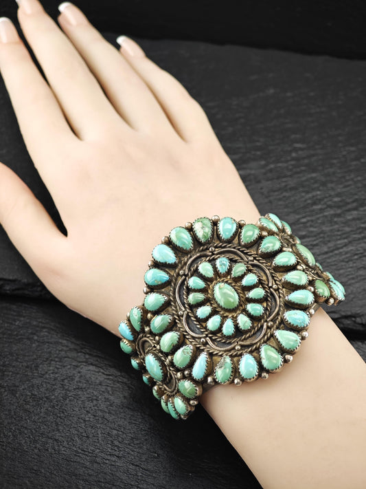 Native American Turquoise Cluster Cuff Bracelet Sterling Silver