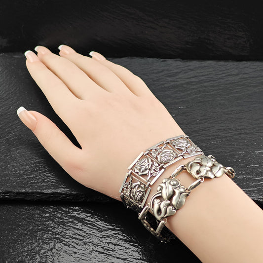 Vintage Art Nouveau Floral Link Bracelet Sterling Silver
