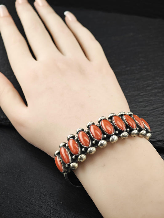 Native American Coral, Cuff Bracelet Sterling Silver