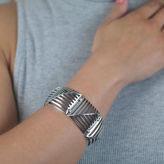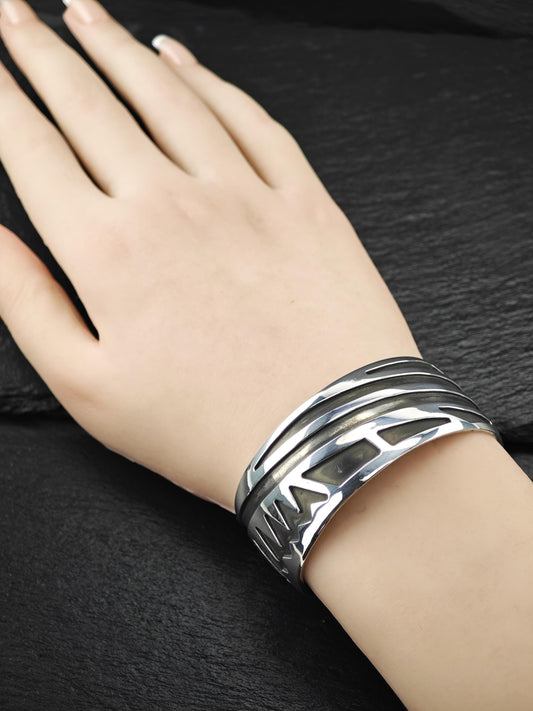 Taxco Mexico, Abstract Cuff Bracelet Sterling Silver