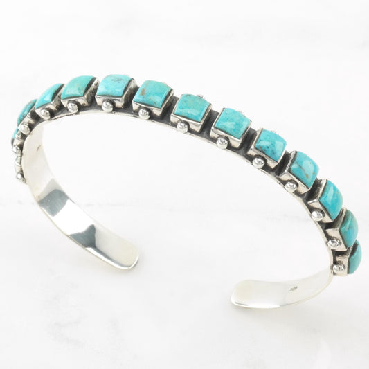 Large Turquoise Square Row Cuff Bracelet Sterling Silver