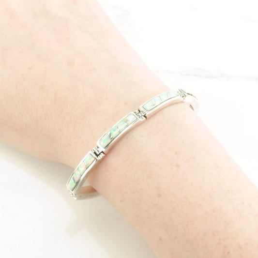 Vintage Native American Sterling Silver Line Bracelet Lab Opal Inlay