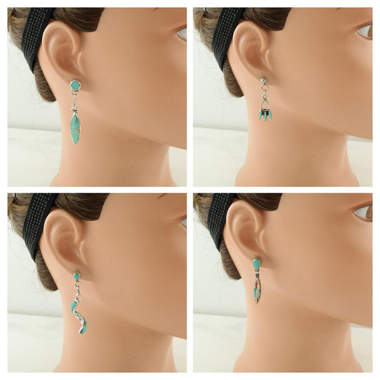 Choice of Vintage Native American Turquoise Coral MOP Sterling Silver Pierced Earrings