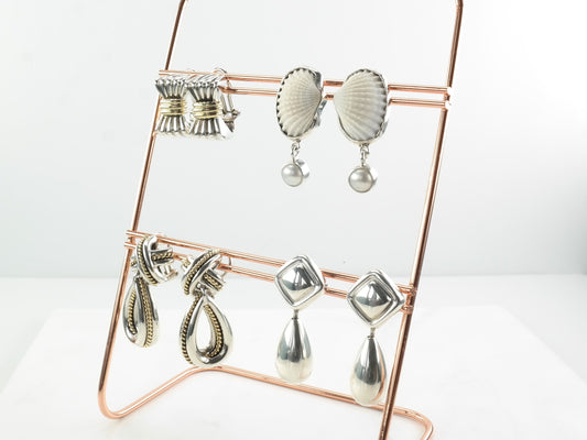 Vtg Tiffany and Co Sterling Silver Gold Silver 18K Gold Accent Bow Earrings Omega Back