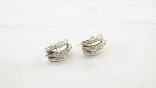 Minimalist Designer Sterling Silver Diamond Earrings French Back