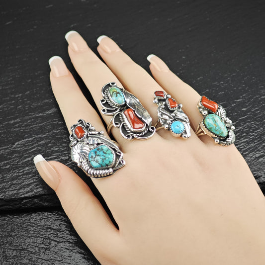 Vintage Turquoise Coral Ring Native American Sterling Silver