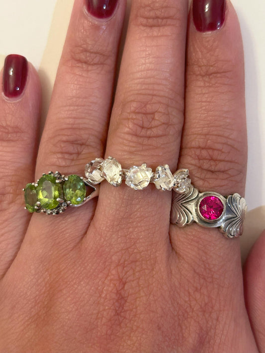 Vintage Nicky Butler SilverRing Ruby Cordundum Peridot, Amethyst, Garnet Sterling Pink Size 9