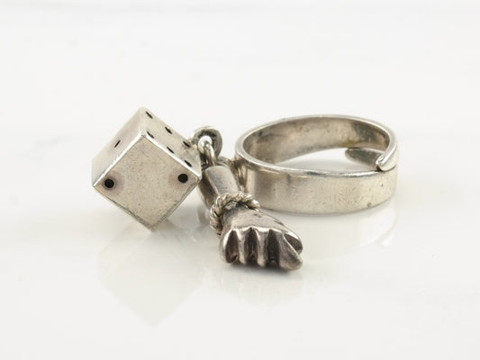 Vintage Figa Dice Sterling Silver Ring Size 4+ Adjustable