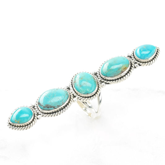 Vintage Long Turquoise Silver Ring Sterling Adjustable