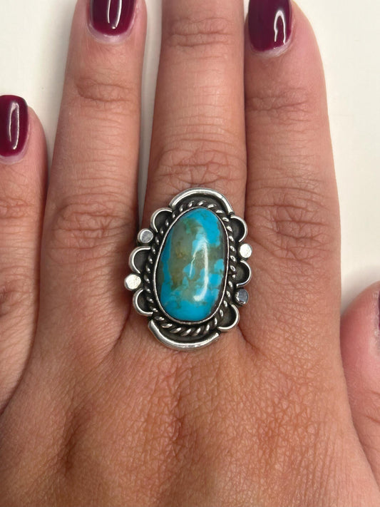 Navajo Guild Sterling Silver Turquoise Ring | Vintage Native American Jewelry Size 7