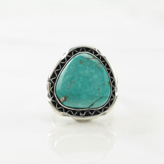 Important Zuni Sterling Silver Ring Turquoise Blue Sz10 R3593