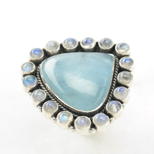Aquamarine Moonstone Sterling Silver Ring Blue Adjustable R5481
