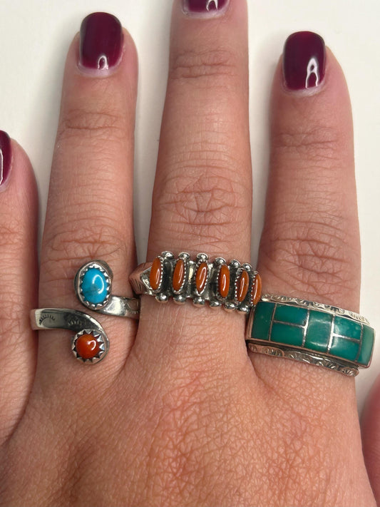 Sterling Silver Ring Cerillos Turquoise Coral Size 6.5