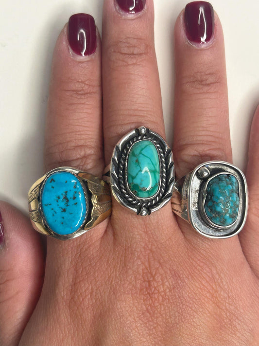 Vintage 1970 Silver Ring Turquoise Sterling Size 13