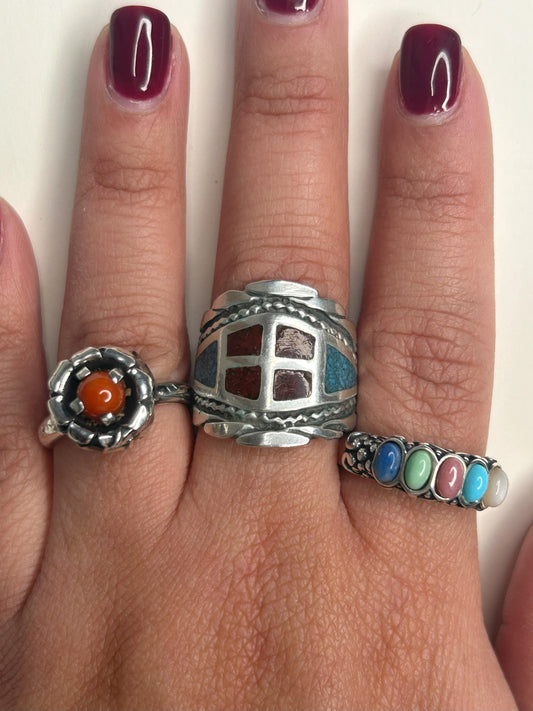 Southwest Sterling Silver Inlay Ring Size 6 1/2