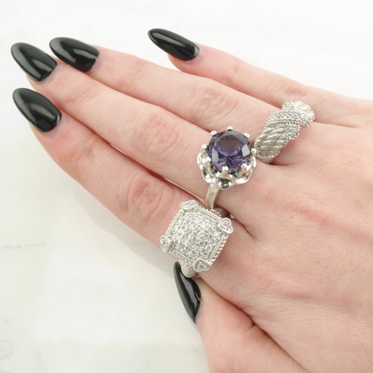 Vintage Judith Ripka Silver Ring Cubic Zirconia X Sterling Size 6