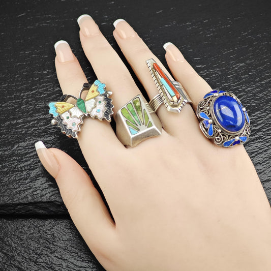 Native American Inlay Ring Sterling Silver Siz e7