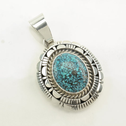 Native American Spiderweb Turquoise Oval Sterling Silver Pendant