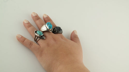 1950 Native American Sterling Silver Cuff Bracelet Turquoise Three Stone