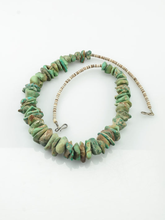 Native American Graduated Natural Turquoise Bead Necklace Sterling Silver