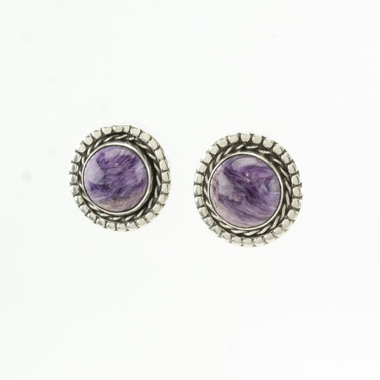 Vintage Sterling Silver Stud Earrings Native American Purple Charoite Circle