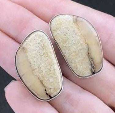 Vintage Sterling Silver Fossil Earrings, 1970s, Beige Earrings, Native American Earrings, Post Earrings