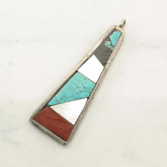 Native MOP, Jet, Turquoise, Coral Inlay Sterling Silver Pendant P2273