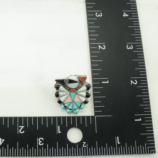 Native Silver Ring Coral Turquoise MOP Onyx Inlay Sun Sterling Sz7 1/2 R4521