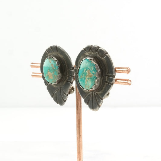 Vintage Native American Sterling Silver Blue Turquoise Stamped Earrings Clip on