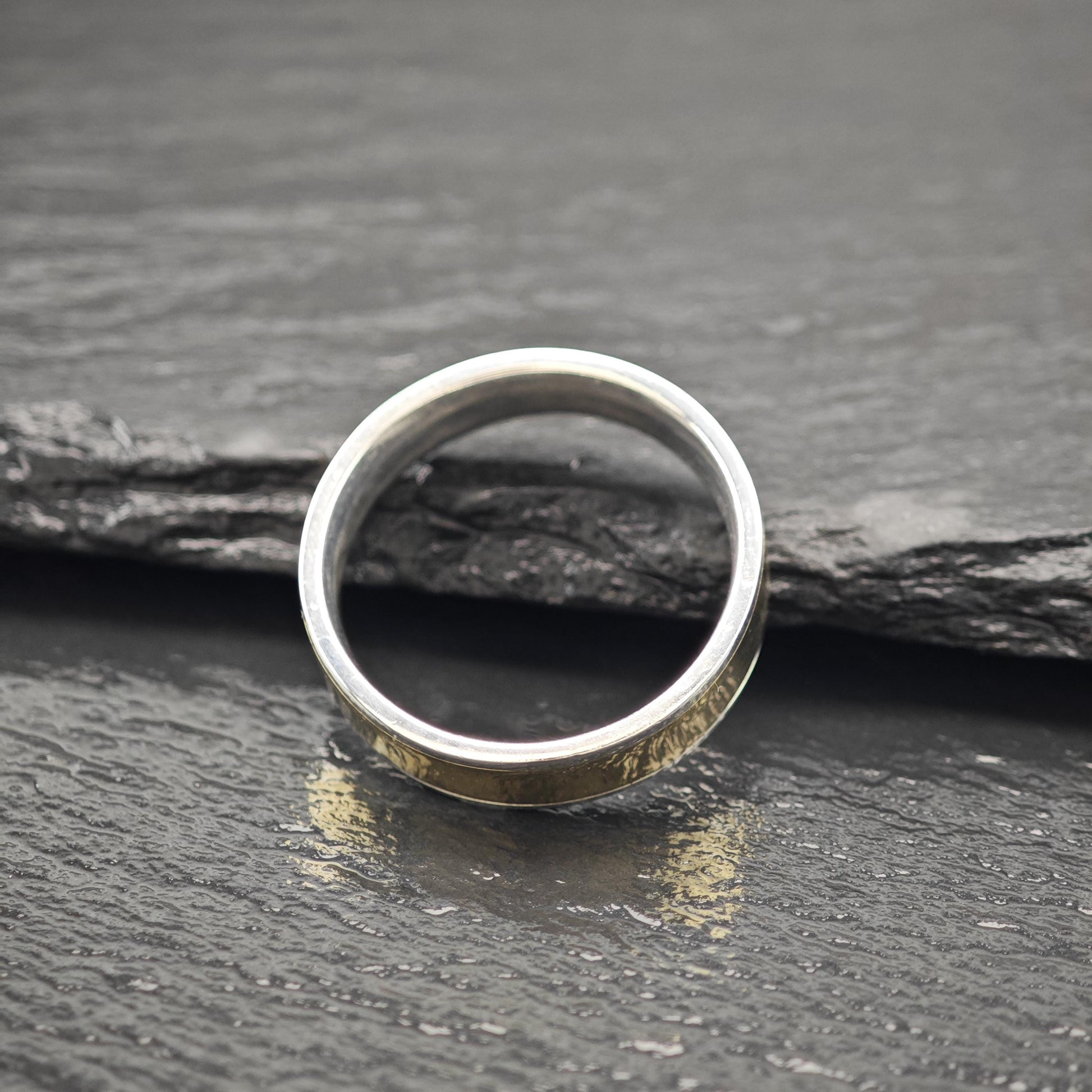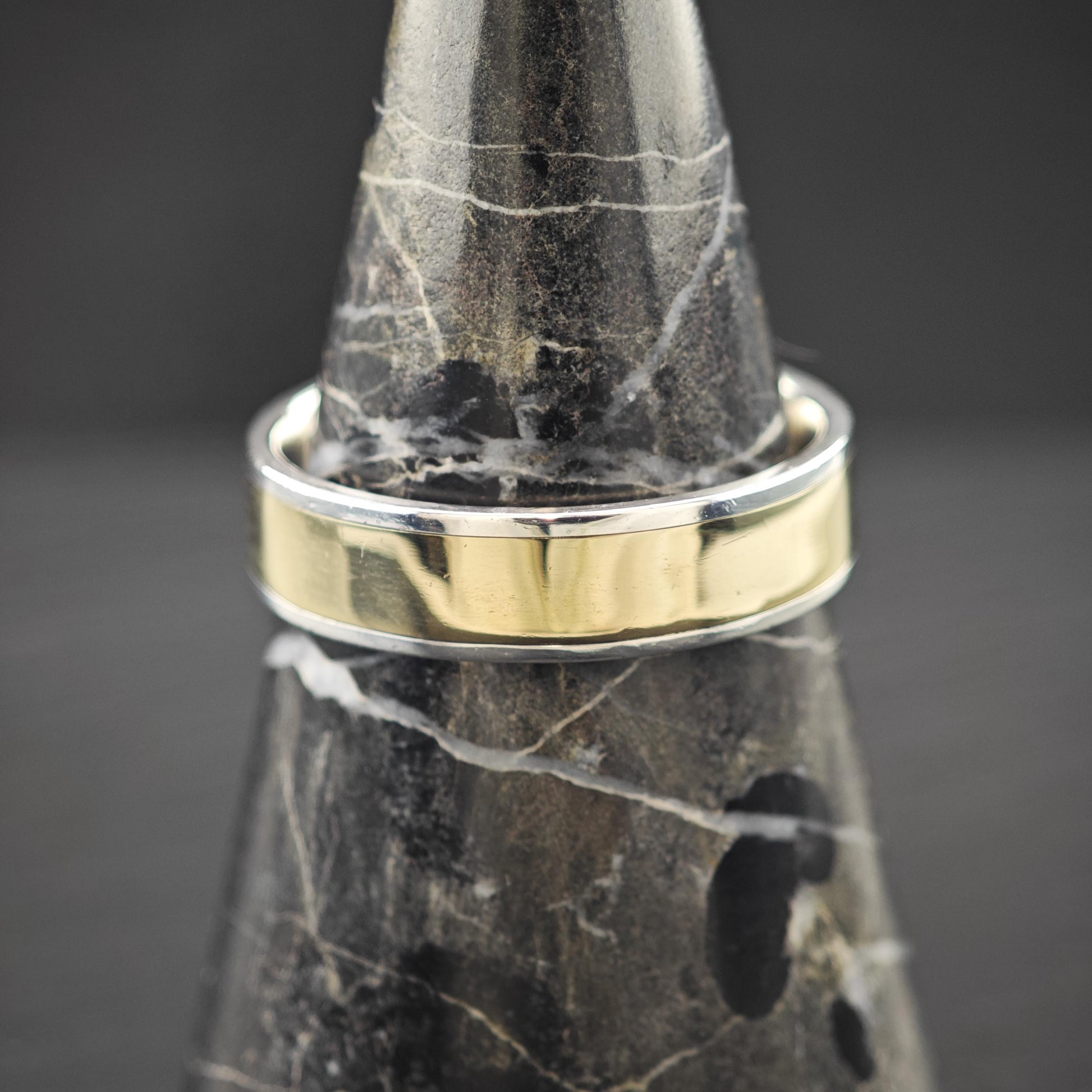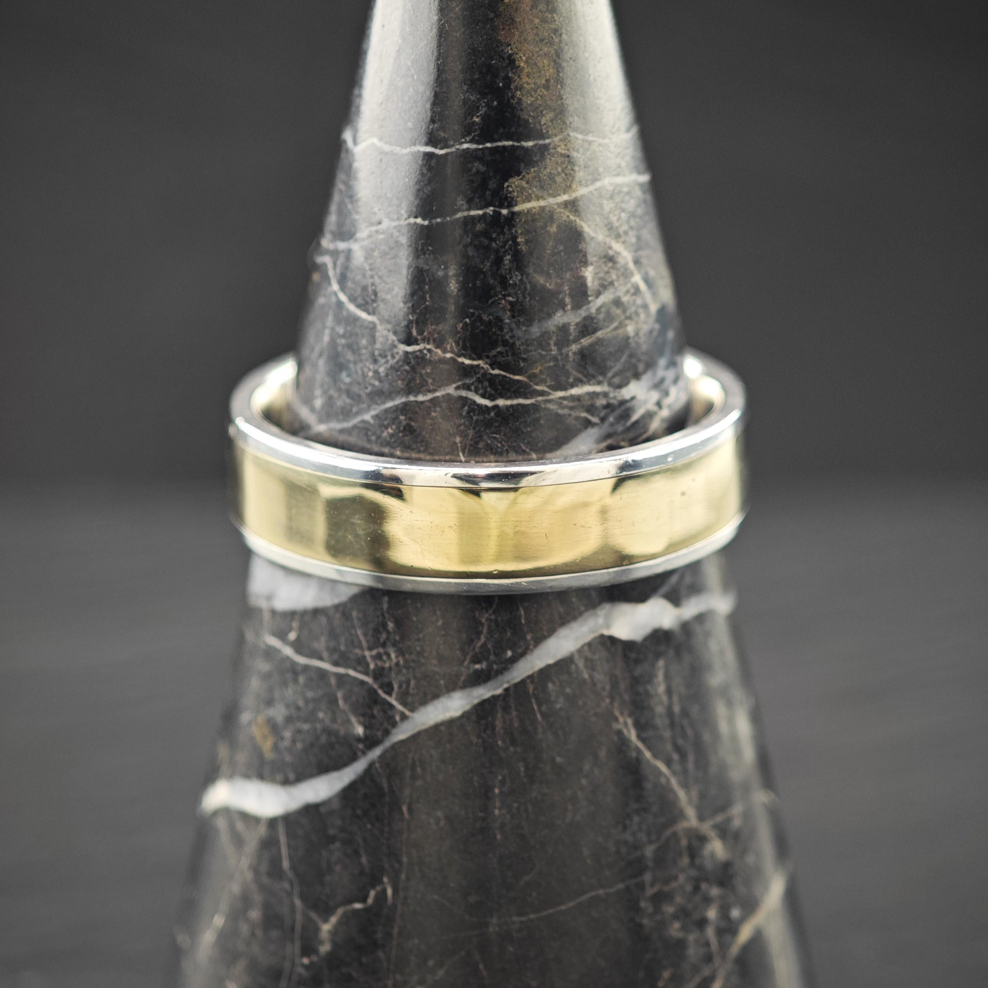 Discover the timeless charm of this vintage band ring, beautifully crafted from sterling silver with a delicate 10KT gold accent. This sterling silver band showcases a classic design that makes it a perfect gift for holidays or special occasions. Each piece carries the hallmark of quality and authenticity, making it a cherished addition to any vintage jewelry collection.