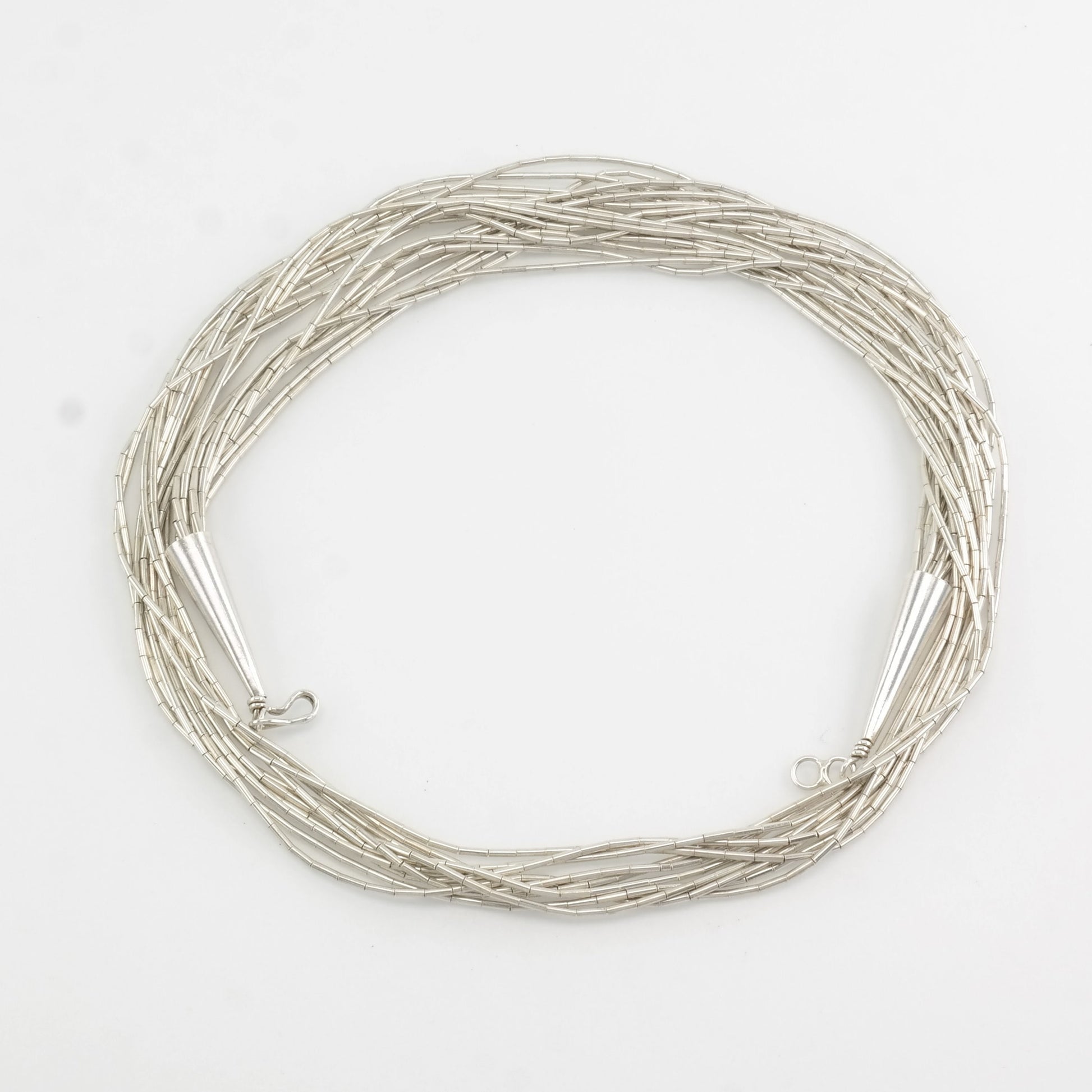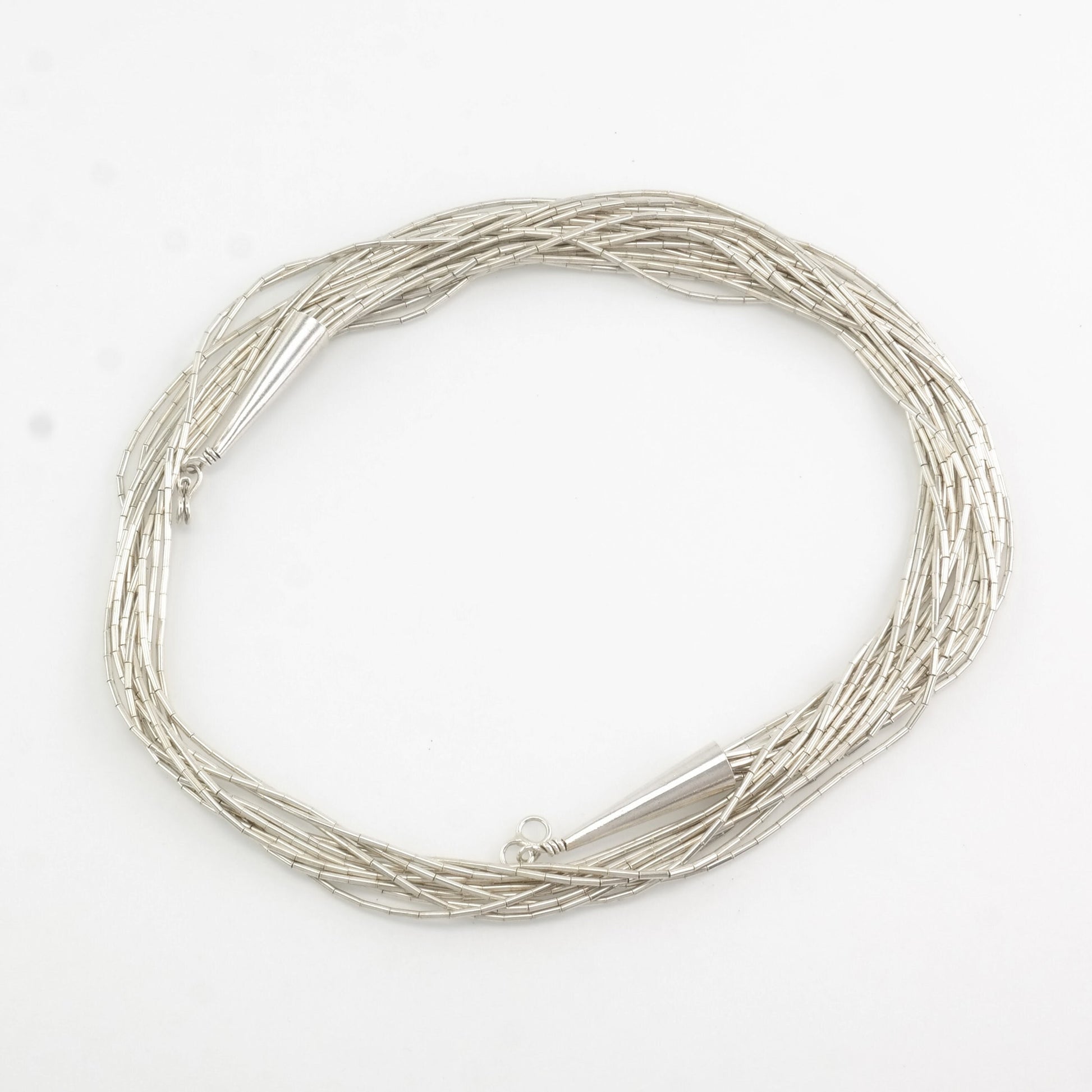 Vintage Southwest Sterling Silver 10 Strand Liquid Silver Necklace