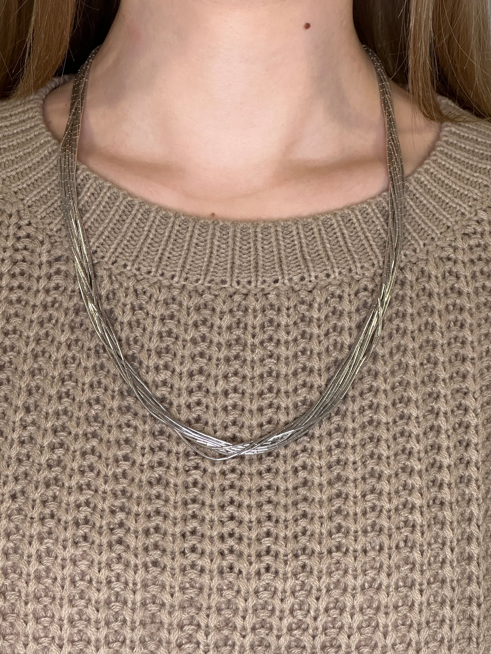 The stone/design of this necklace is 10 Strand Liquid Silver