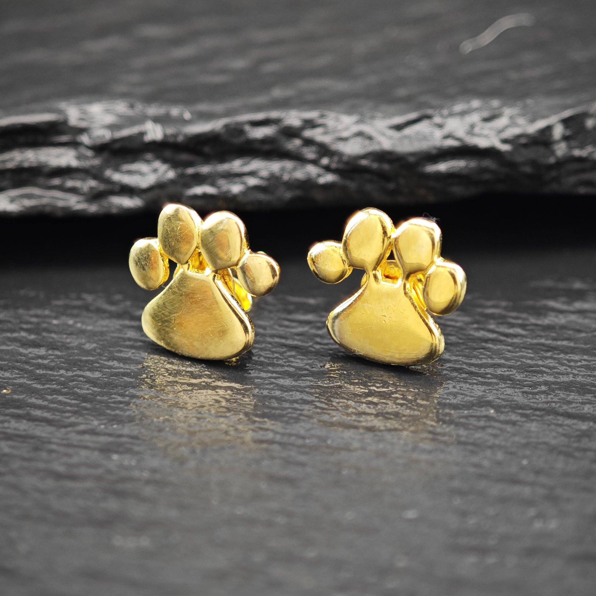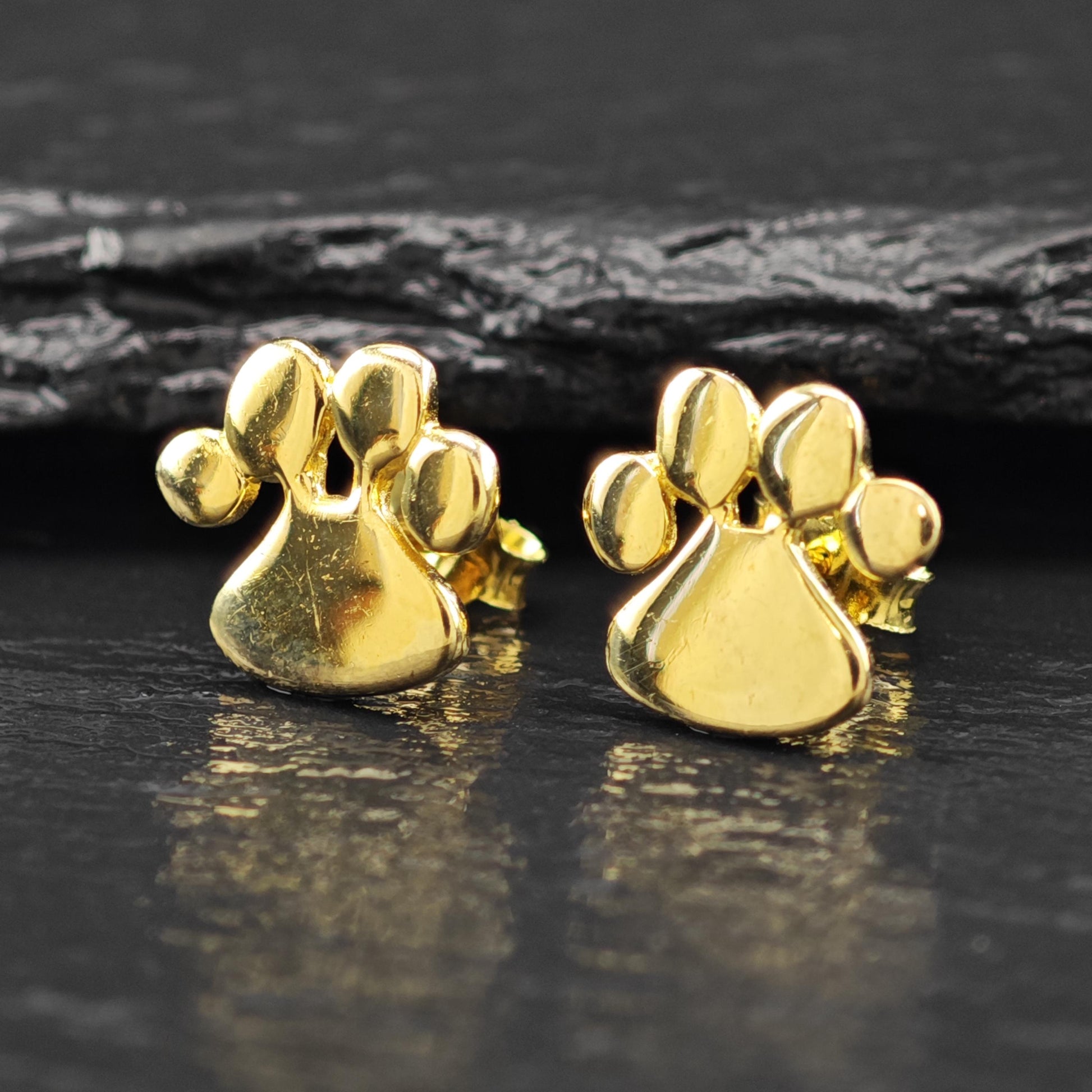 14K Gold Plated Puppy Paw Stud Earrings Sterling Silver
