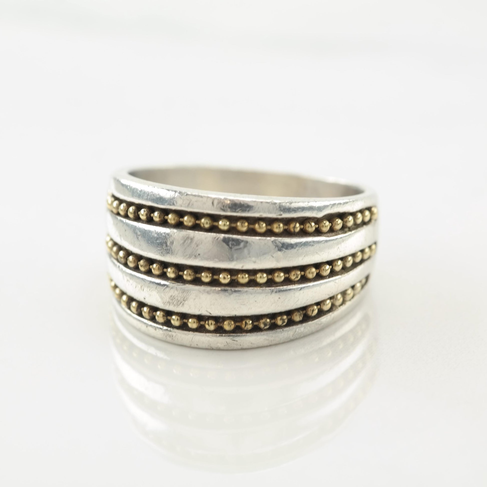 18k Gold Accent, Sterling Silver Ring Size 7 1/4