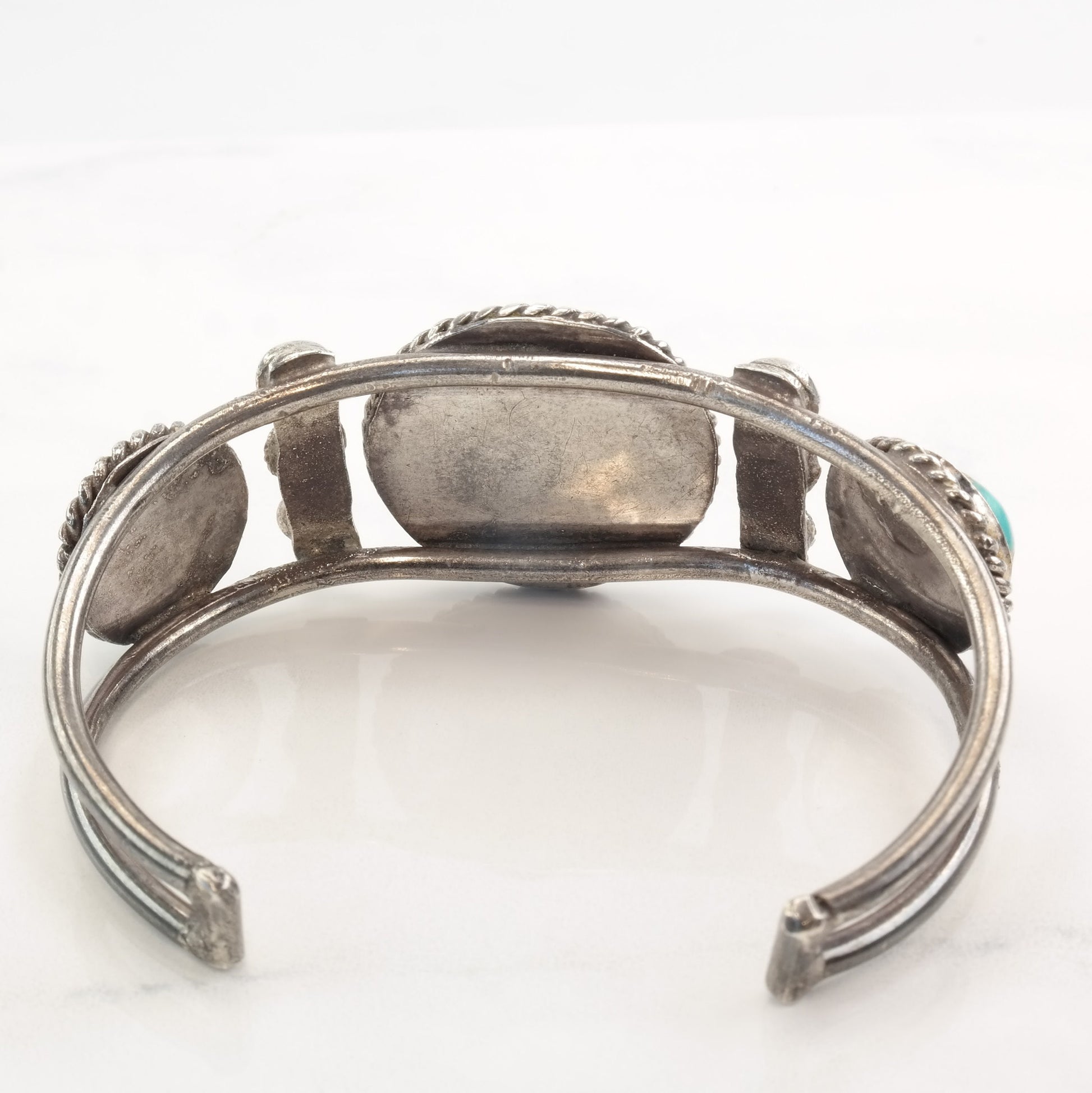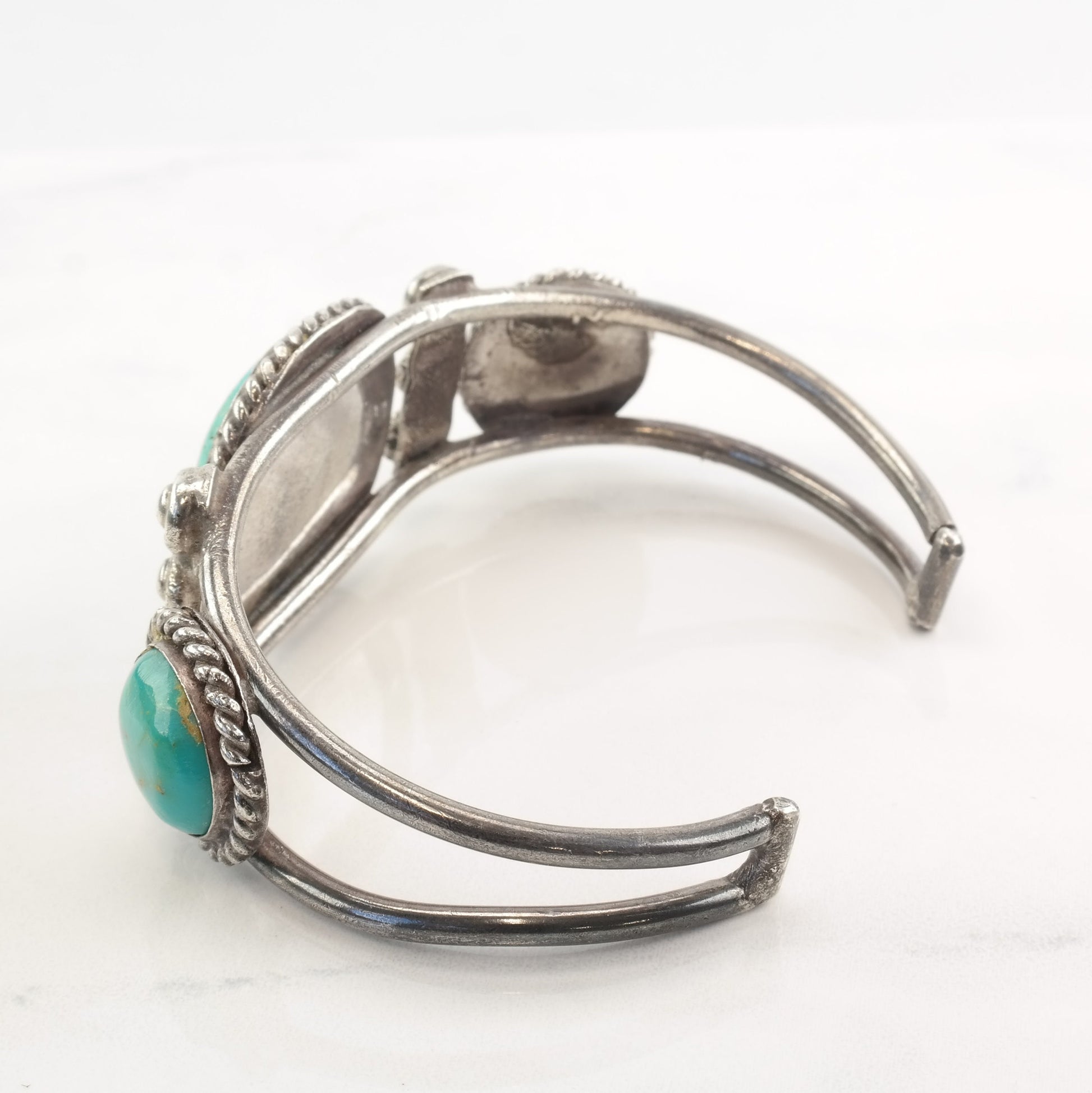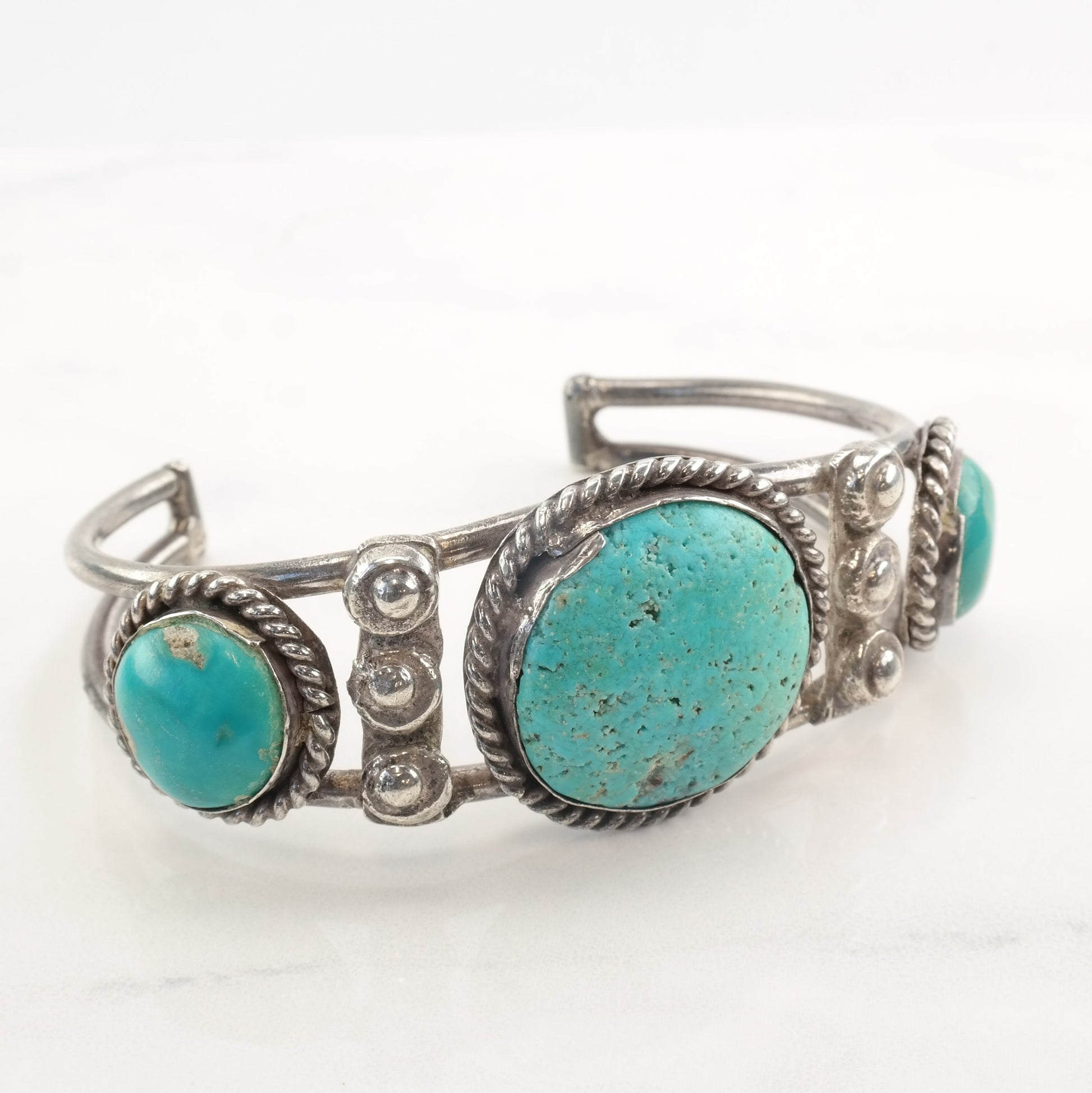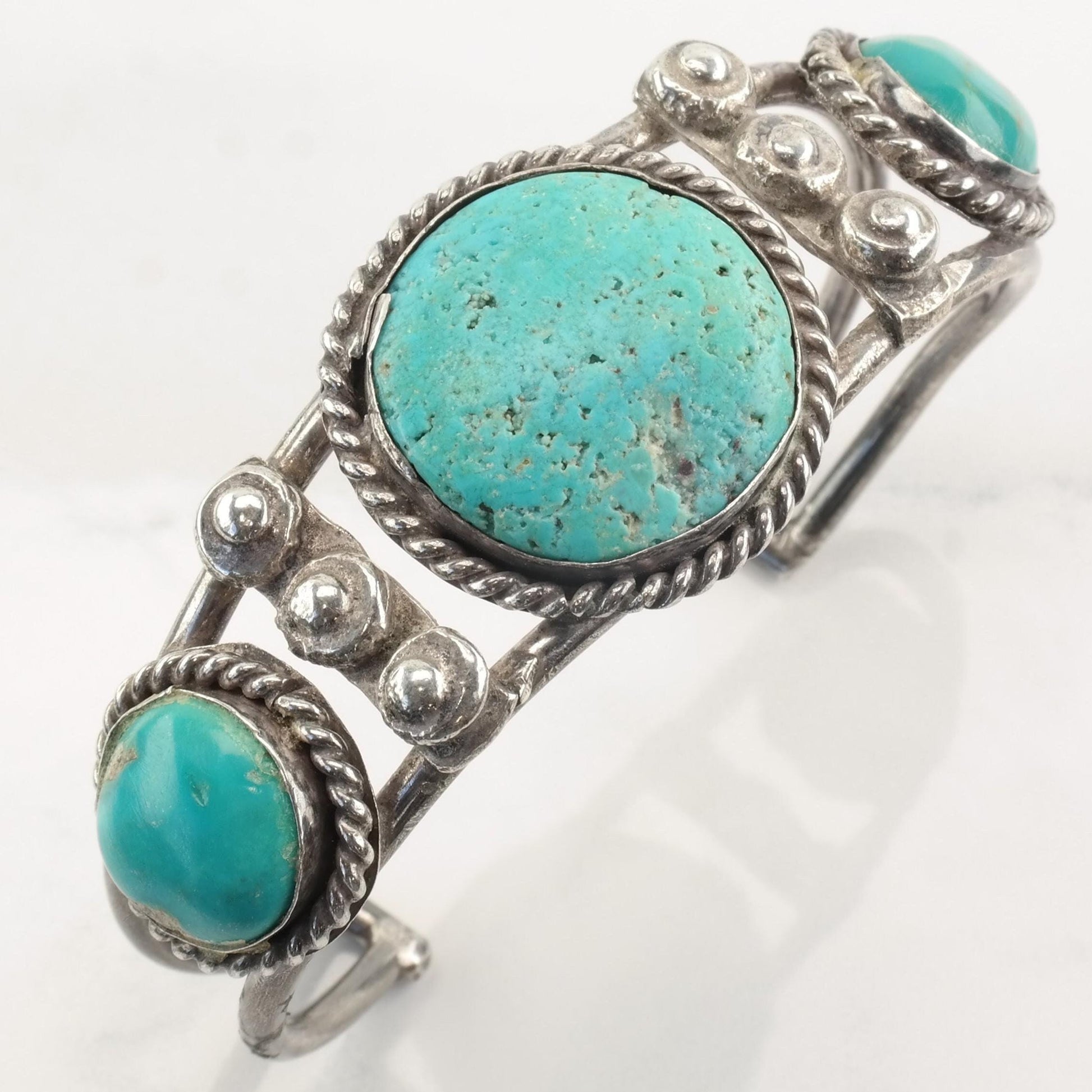 1950 Native American Sterling Silver Cuff Bracelet Turquoise Three Stone