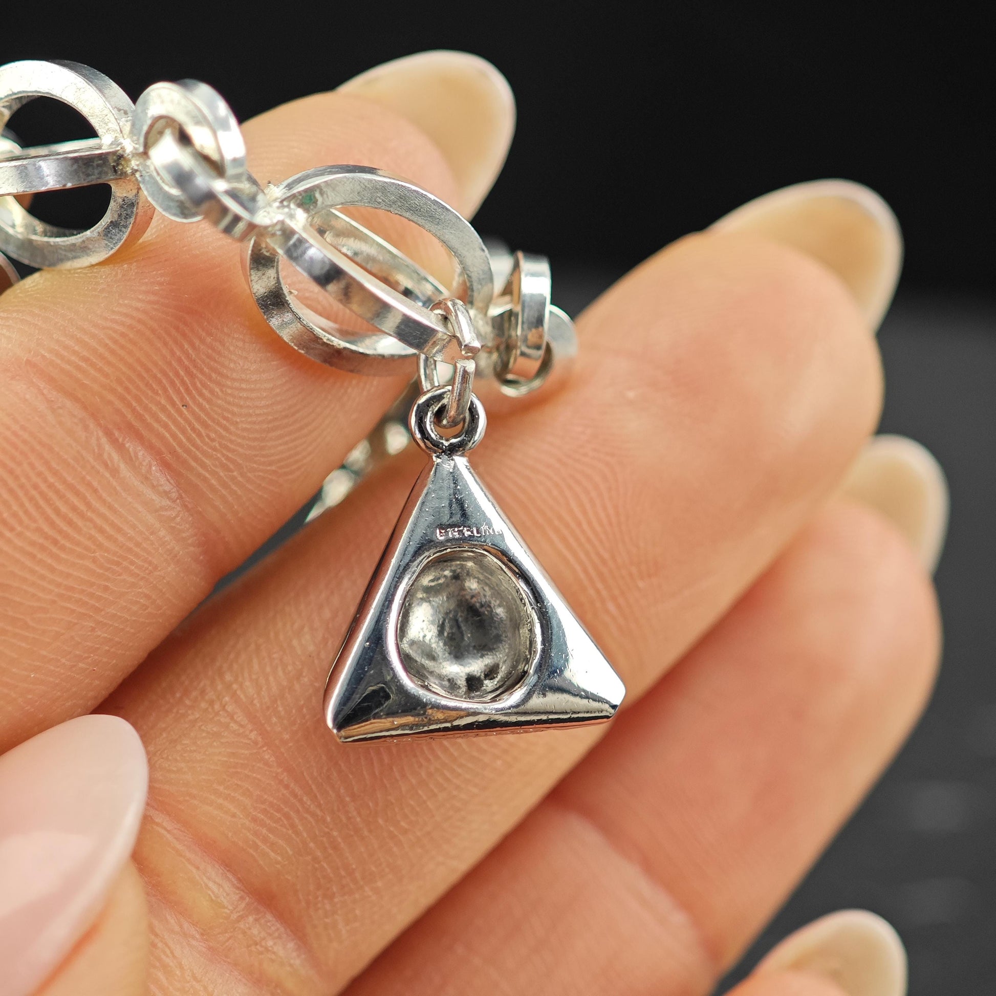 Designed to fit a wrist size of 7 inches, the bracelet measures 8 inches in length when laid flat and has a width of 3/8 inch. Weighing 45.4 grams, this bracelet is not only a beautiful accessory but also a piece of history. The condition is excellent, having been cleaned and polished, with only age-appropriate wear, if any.