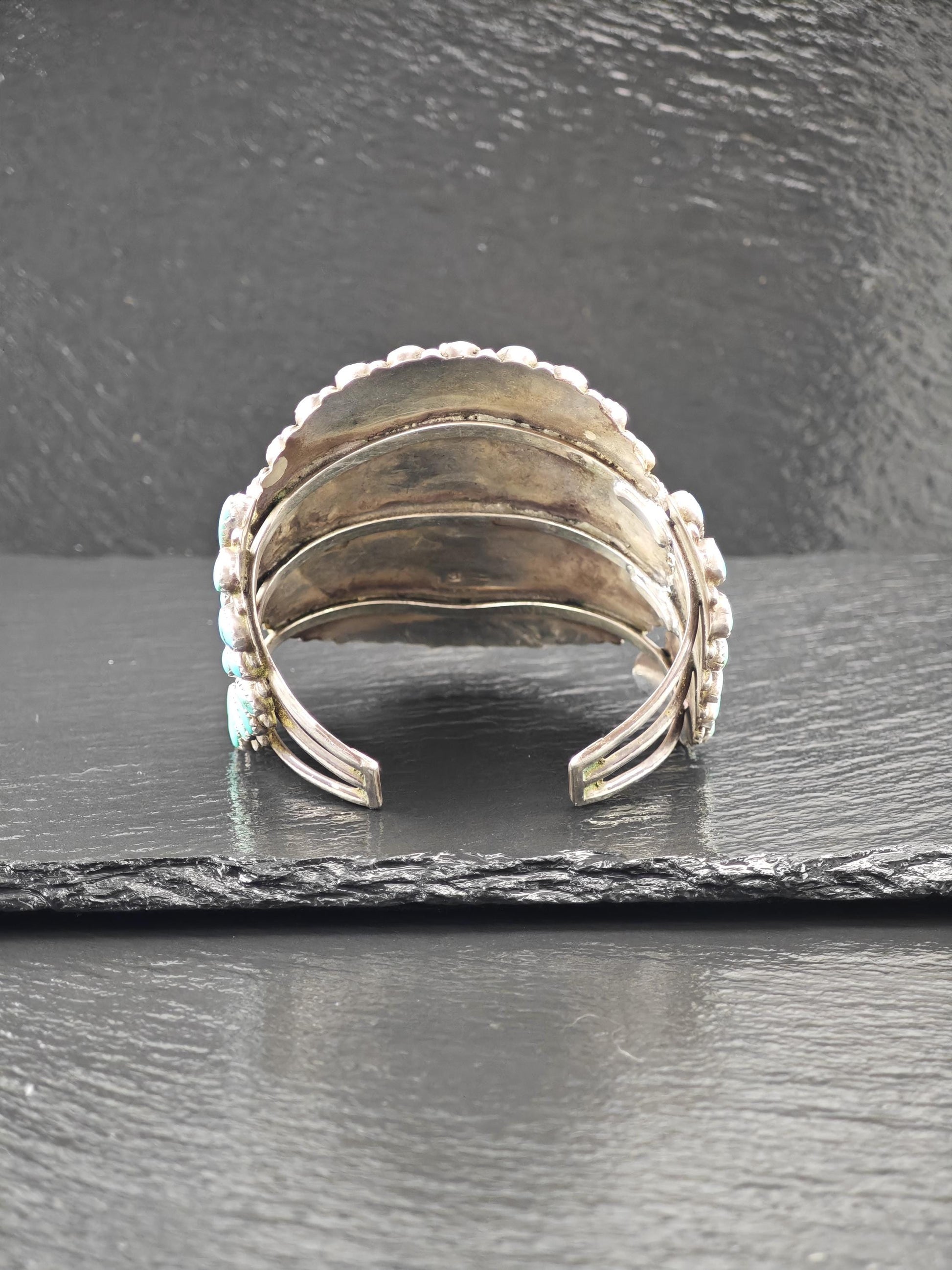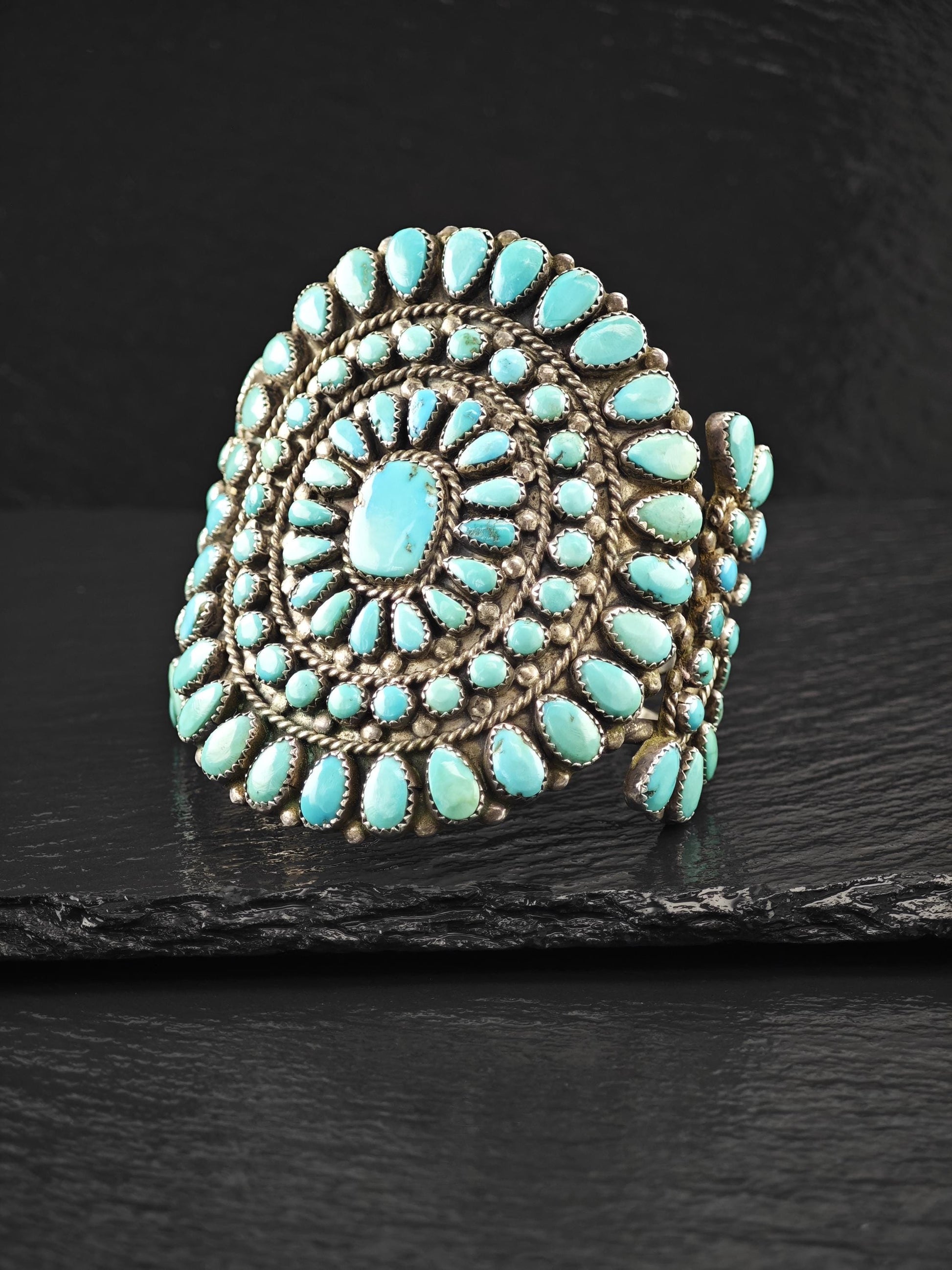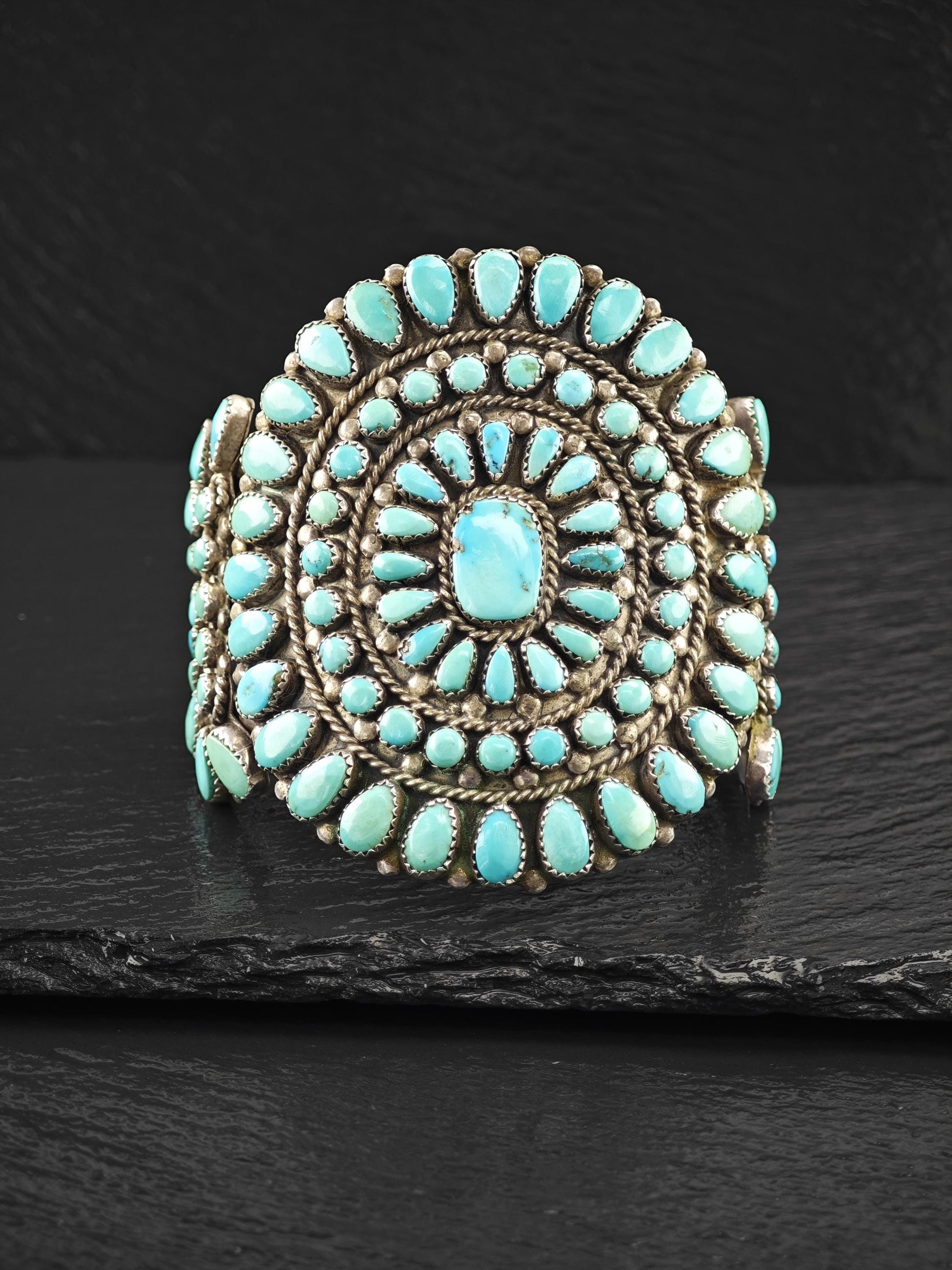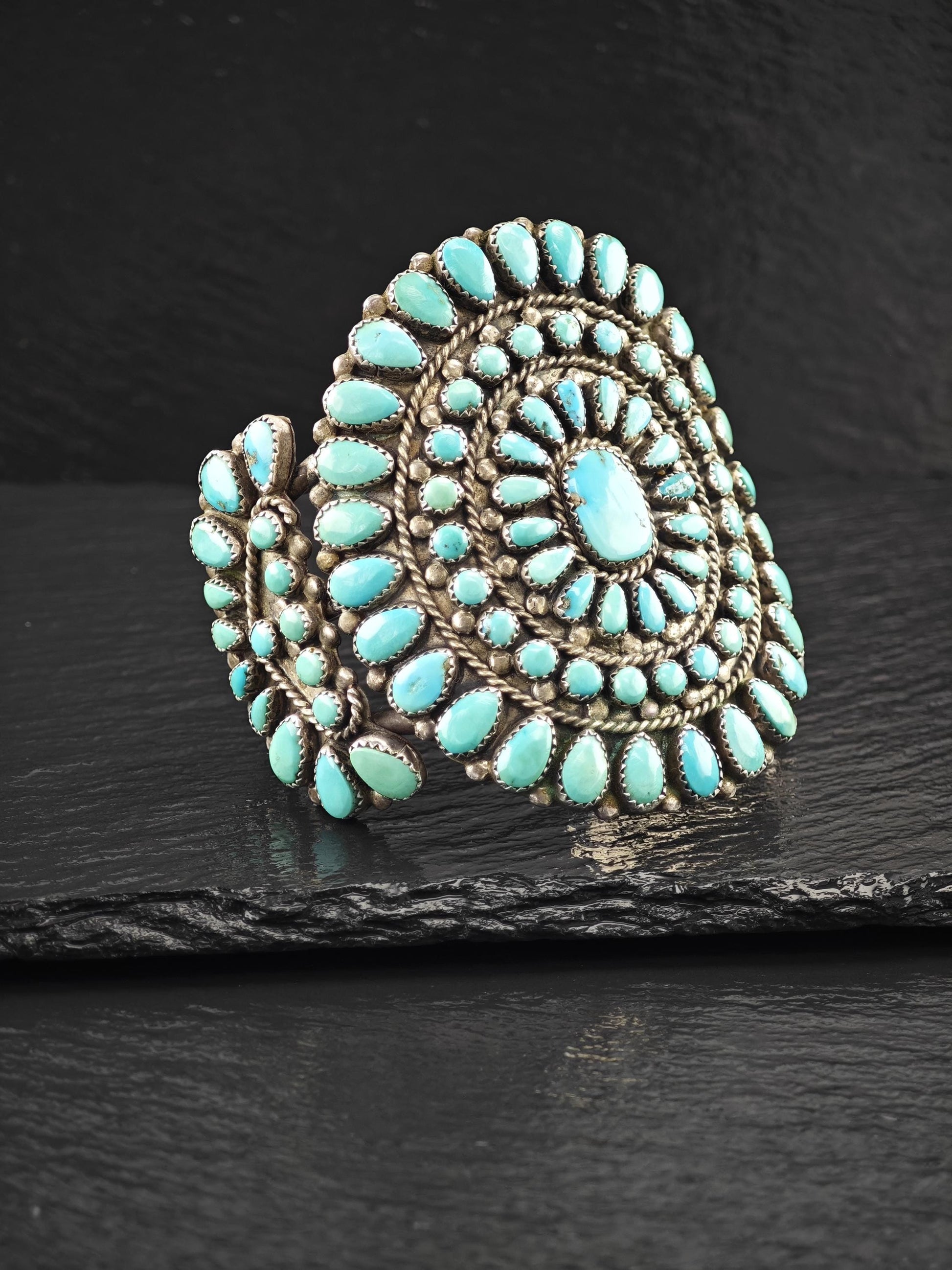 1950's Native American Large Cluster Turquoise Cuff Bracelet Sterling Silver
