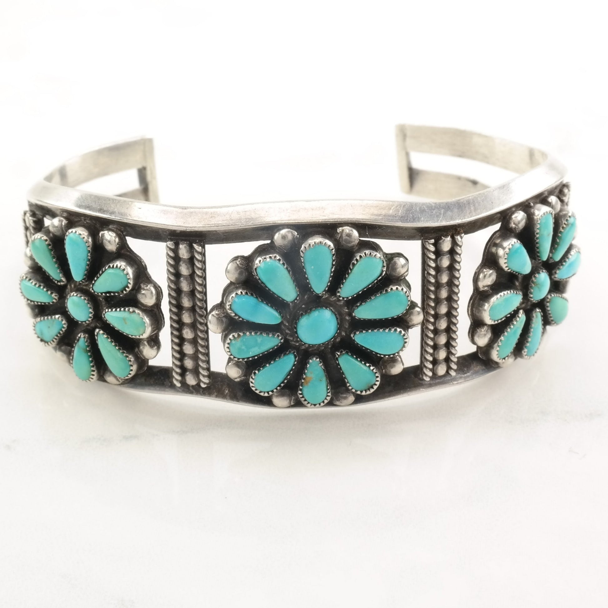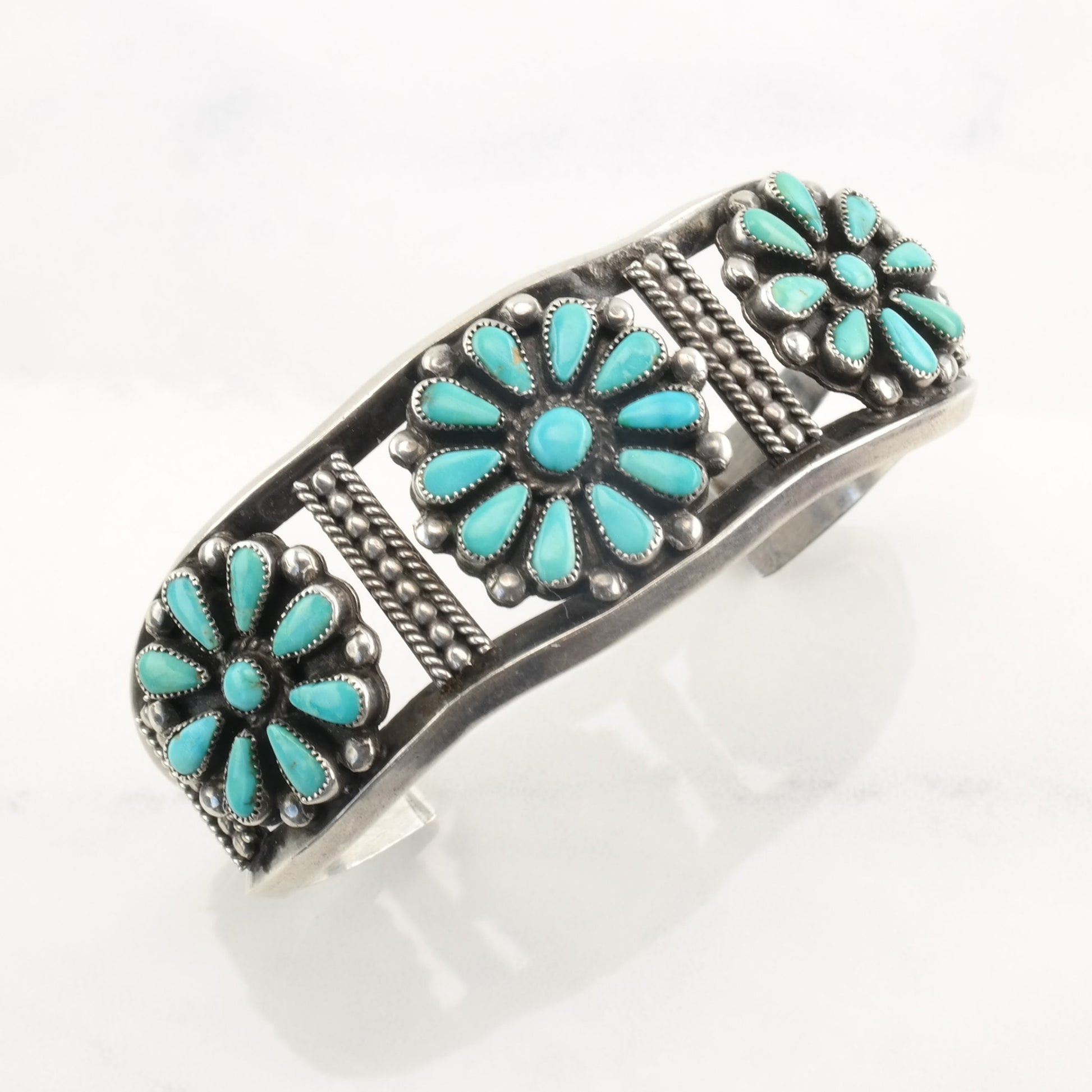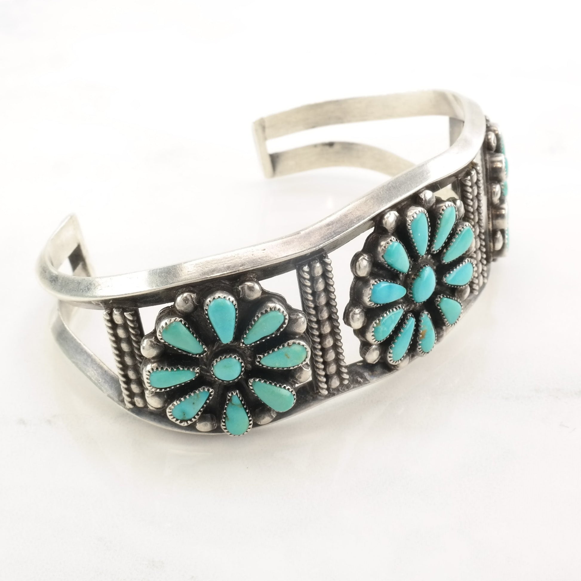 1950's Native American Sterling Silver Cuff Bracelet Petit Point Turquoise Ingot Silver